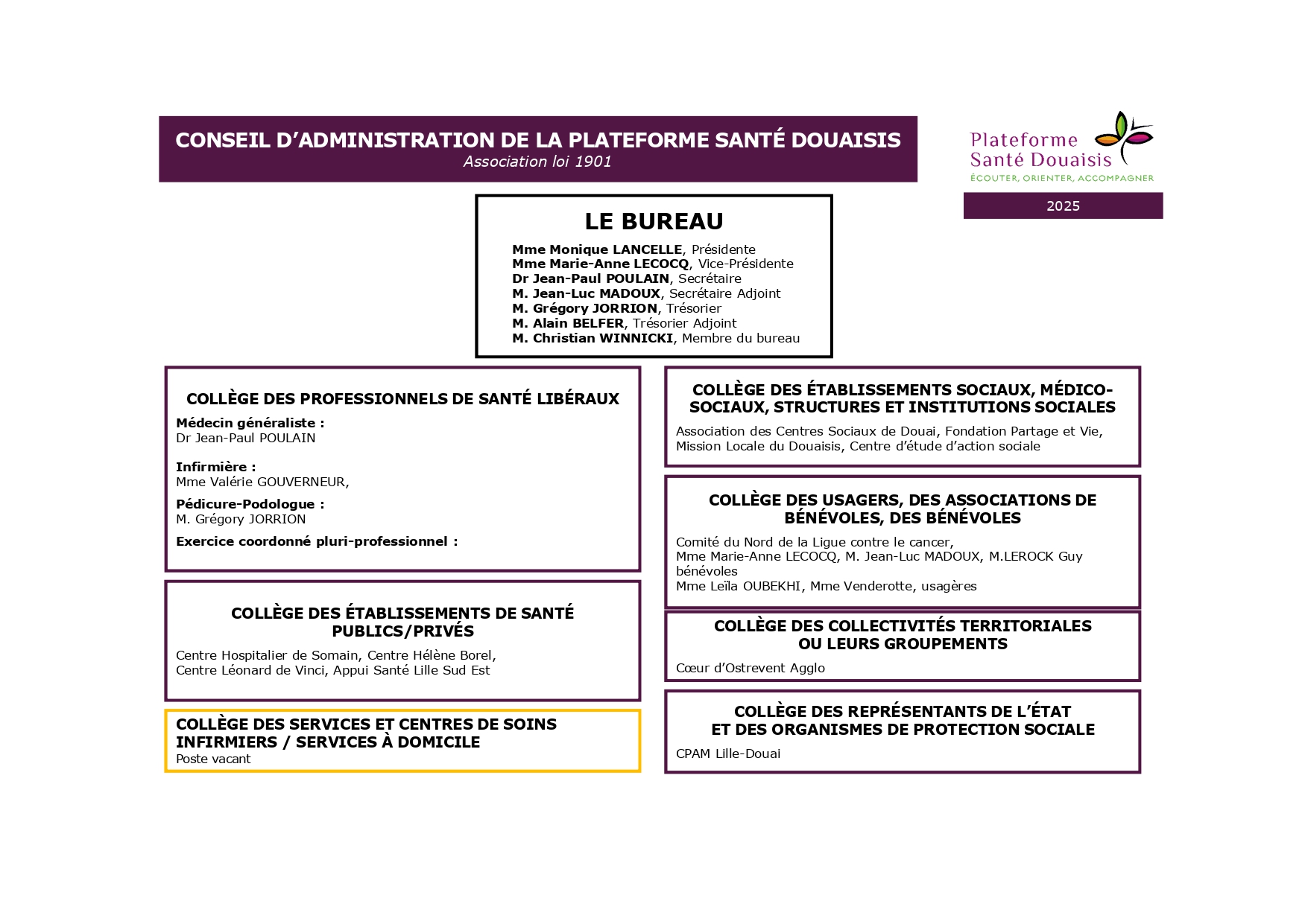 La Plateforme Santé Douaisis est une association loi 1901, née en Décembre 2007.